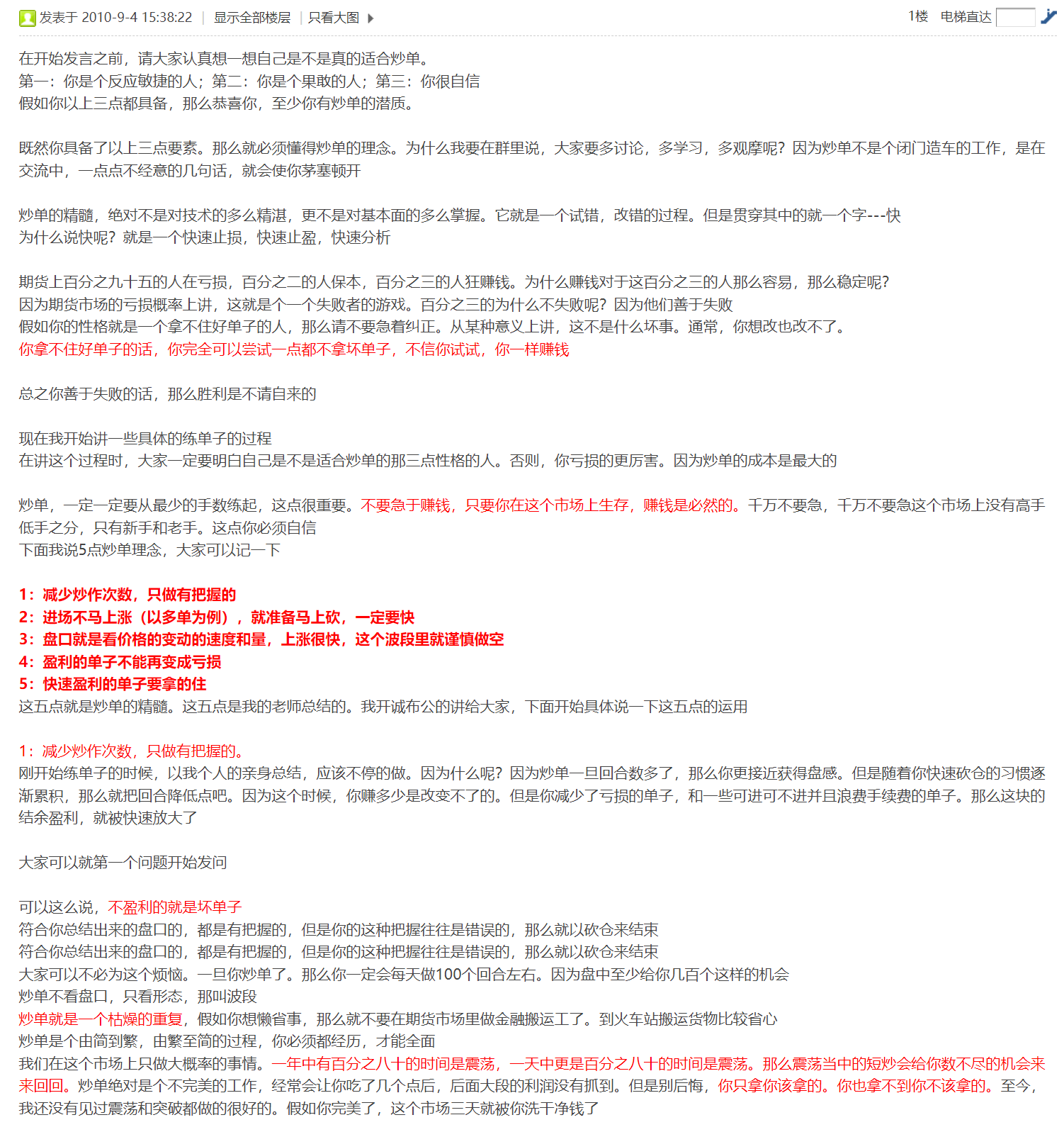 很多人说现在炒单已经和从前不一样了、炒单不好做、现在炒单不行了、现在已经被程序化占领了、人工炒单无法生存了…..等等。事实果真如此吗?我们先来看看12年前的一篇老贴子: