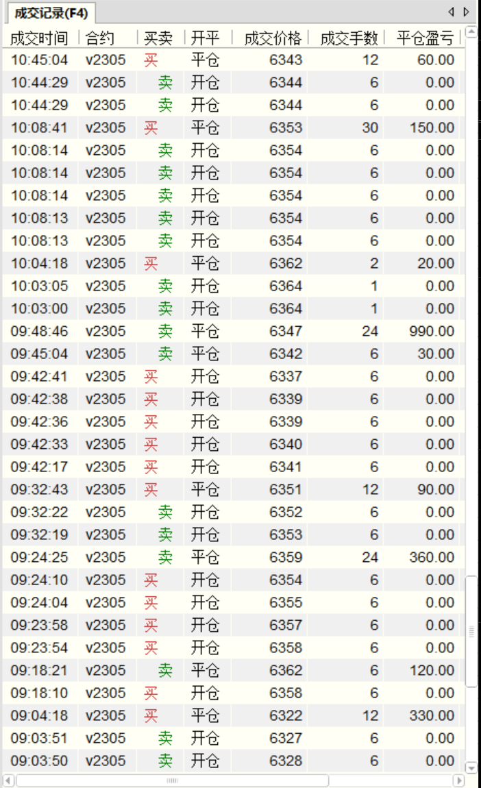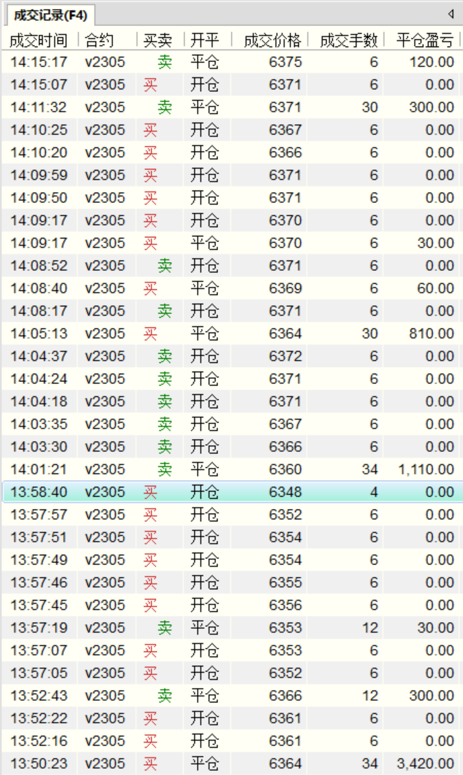 我不知道做波段的同学们能不有受得了这种过山车式的震荡,反正我做日内短炒的是受不了,绝对要上头。PVC总体上来说与大盘有同步,但与原油和螺纹这些大品种的关联不太好,很怪异的是PVC有时候能引导原油的短期走向,原油在拉的时候PVC不动,然后PVC往下砸的时候原油有点慌不择路的跟跌,或者说PVC的主力资大哥是对盘面的走向预计的非常准确,往往能提前预判大盘方向并提前异动,在这一点上非常佩服PVC里的大哥们!今天的单子回合数不多,但很多单子在1分钟K线上根本看不出名堂。