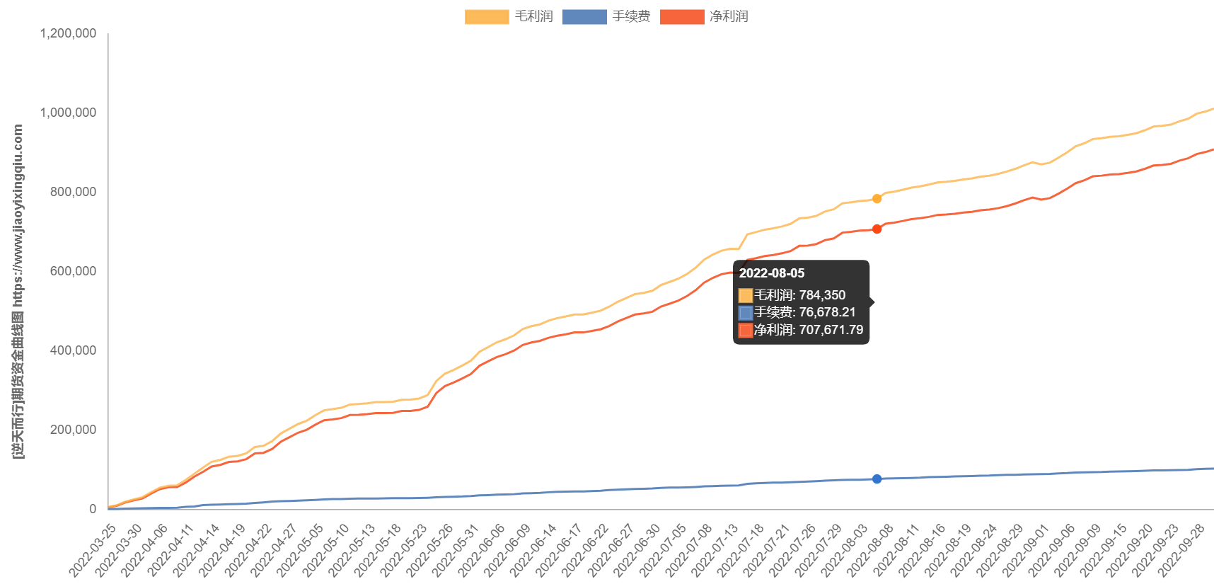 看视频里的口音“逆天而行”应该是广东潮汕一带的人,他开始一直就用几万块的小资金在交易,刚开始和广大散户一样也是一直亏损,后来慢慢做大到十几万,并一直保持十几万的资金交易,做的是日内的短线高频交易,每天赚钱了就出金,下来再看看逆天而行这种几乎没有回撤的资金曲线图: