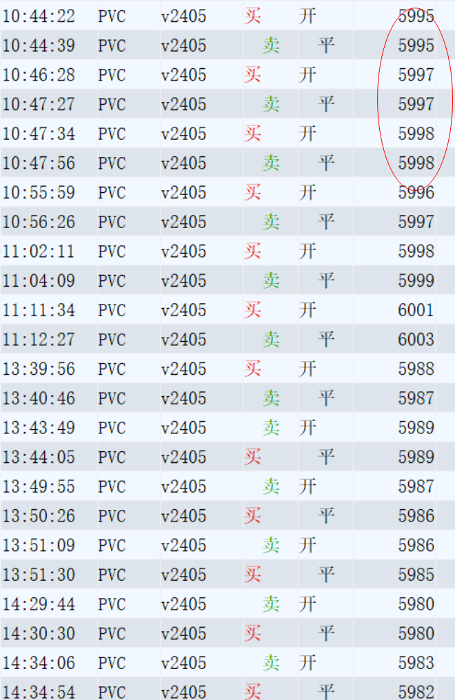14:28,14:29分这两根K线的盘口也是十分流畅给力,但都没做到,然后到了14:30分后因为没赶上前面两根大K线还连续开了多笔空单。 这个时间节点的螺纹、白银、原油太强了,PVC、PP,塑料等化工硬生生的跟着把价格往上拉。