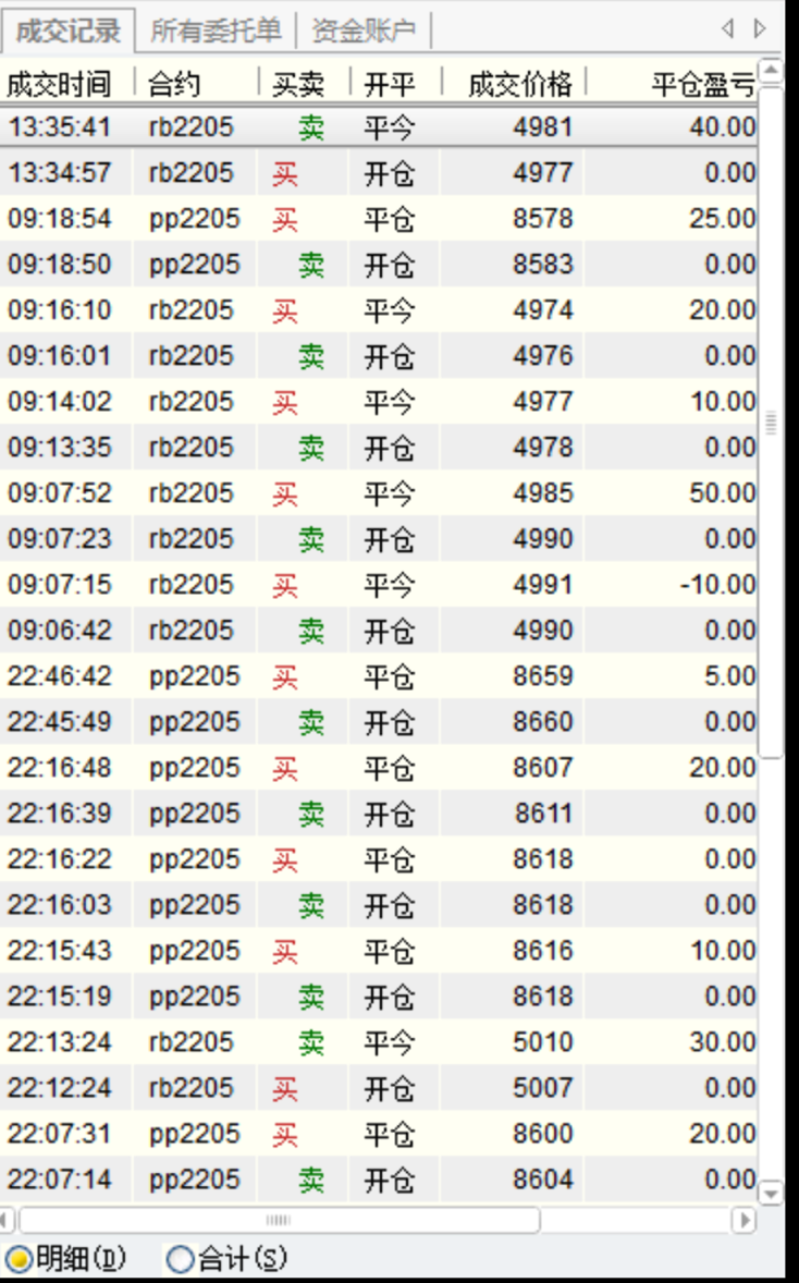 今天做了几手PP和螺纹,因为时间太碎片化,完全无法长时间盯盘,所以只做了二十个回合,也错过了很多行情,现在错过行情也不会像以前哪样懊悔了,我们做单是交易规则而不是交易市场,机会永远都有。