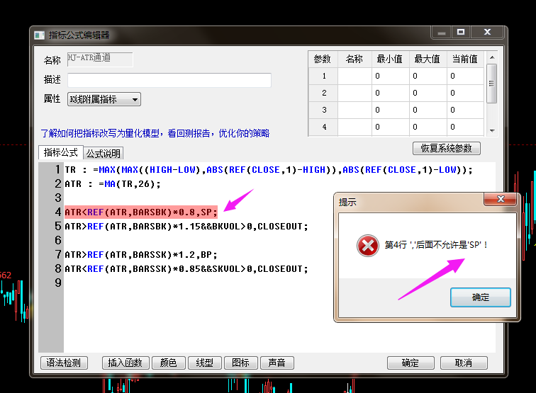 这是老师之前编写的指标,意思是“ 开多,当ATR跌20%仓、升15%止损、开空,当ATR升20%平仓、跌15%止损 ”